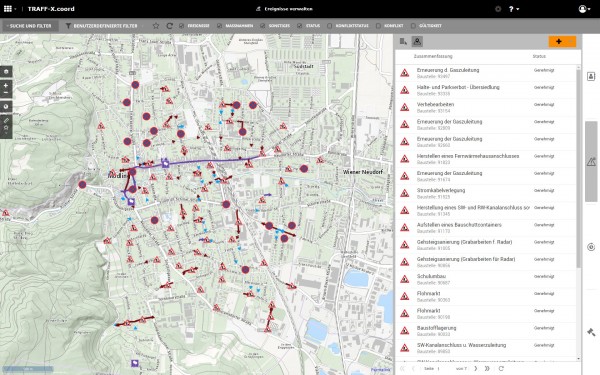 In TRAFF-X® sind aktuell Baustellen, Baustofflagerungen, temporäre Halte- und Parkverbote sowie Veranstaltungen enthalten. In naher Zukunft ist dieses technische Update auch für Bewilligungen zu anderen Zwecken als zu solchen des Straßenverkehrs, z. B. zu gewerblichen Tätigkeiten und zur Werbung (§82 StVO 1960) vorgesehen.